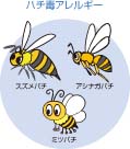 アナフィラキシーを引き起こす可能性のある虫さされとしてはハチが最も代表的であり、中でもスズメバチ、アシナガバチ、ミツバチが重要です。