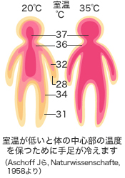 私たちのからだは、重要な臓器が集まるからだの中心部を一定の温度(通常は37度前後)に保とうとしています。