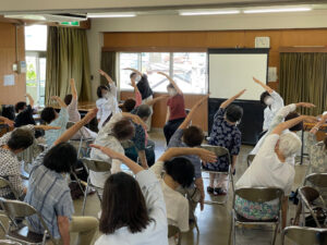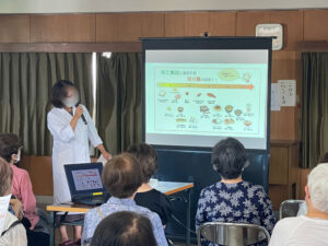 薬剤師による「尿のトラブルについて」の講演、管理栄養士による「高血圧の食事法について」の講演、ロコモトレーナーによる「ロコモ体操」を行いました。