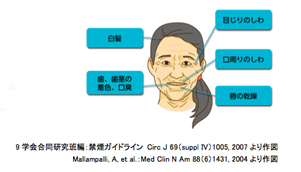 このような喫煙者に特有の顔を「スモーカーズ フェイス」といい、しわに加え、歯や歯ぐきの着色、口臭、白髪、頭髪の脱毛なども伴います。