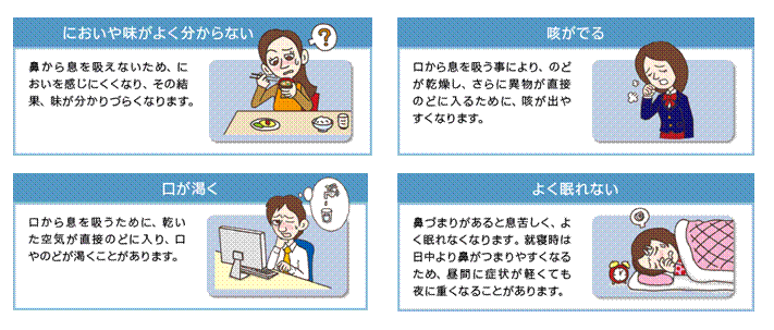 これらは「鼻づまり」が原因でおこる可能性のある主な症状です。