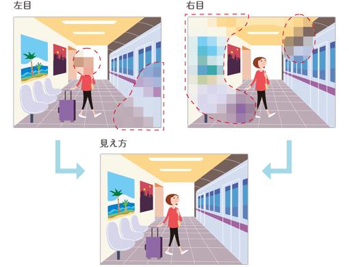 片方の目に見えない部分があっても、両目で見ているともう片方の目でカバーしてしまうため、